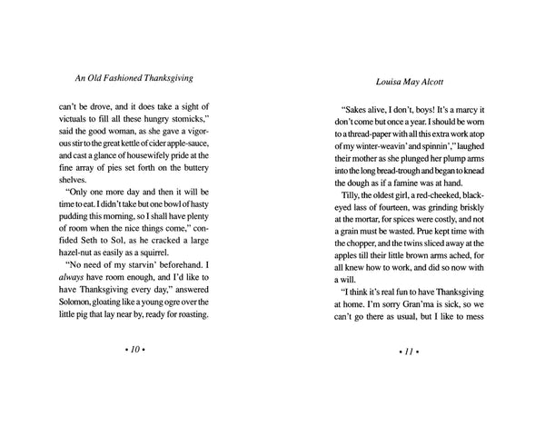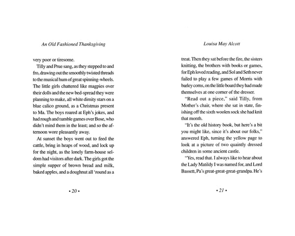 This story of an 1820s Thanksgiving is filled with the warmth of character and family life that has made Louisa May Alcott a favorite for more than 100 years.