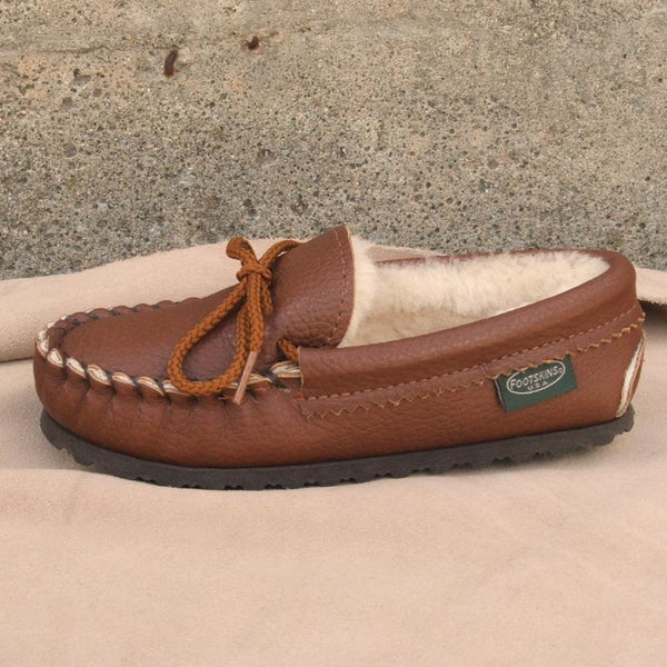 The soft sheepskin inside and genuine deertan leather outside combine to make a comfortable slipper for children. A functional lace adjusts for fit. This low slip-on style with no additional sole will keep children's feet cozy and warm!