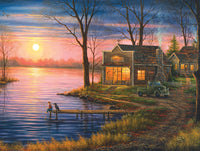 300 pc puzzle -18" x 24": - Artist: Abraham Hunter cabin, sun, dog, fishing, old truck, fish