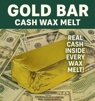 Looking for a unique and fun way to enjoy your wax melts? Look no further than our Cash Gold Bar Wax Melts - the world's largest cash gold bar wax melt! These wax melts are shaped like gold bars and contain either real cash, real gold nuggets, or a combination of both. Plus, each melt comes with a minimum of a real $2 bill inside, and randomized giant cash gold bar wax melts can even contain up to $2500 in cash and gold nugget prizes!