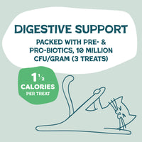 Check out these sweet edibles. Our fresh catnip may cause “the rips” followed by a surprise nap. Sweet potato is added to help boost digestion when those munchies kick in. Size: 2.5 oz Flavor Profile: Chicken & Catnip Health Benefit: Digestive support Product Attributes: Made in the USA, corn free, soy free, all natural, packed with pre & probiotics Sustainability Attributes: Upcycled ingredients, made with Solar Energy, made with over 25% post consumer recyclable (PCR) plastic bottles & milk jugs Product Dimensions (LxWxH, in.): 2.25 x 5.25 x 7.0. By Shamelss Pets.