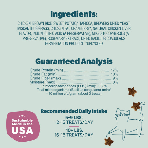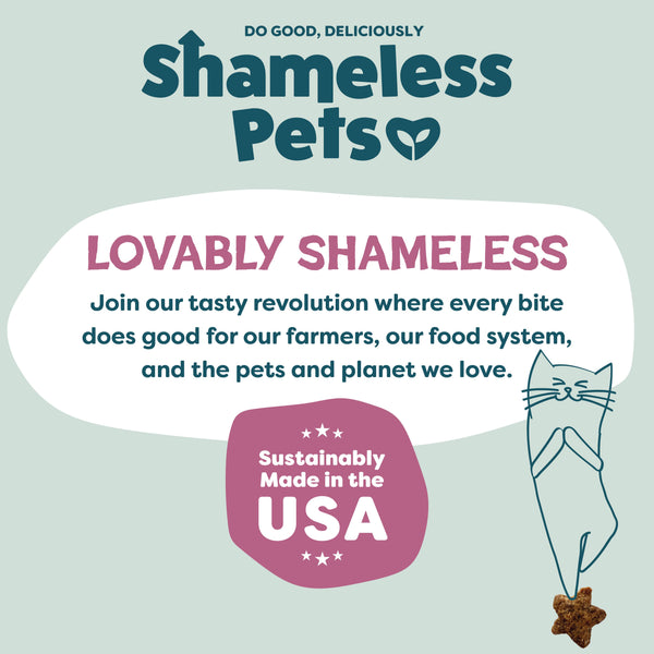 If your kitty can say chicken, get them on Tik Tok now! Whether you have a celeb or average kitty they will love our blend of savory chicken with a hint of tart cranberries. We include prebiotics and probiotics for digestive support. Size: 2.5 oz Flavor Profile: Chicken & Cranberry Health Benefit: Digestive support Sustainability Attributes: Upcycled ingredients, made with solar energy, made with over 25% post consumer recyclable (PCR) plastic bottles & milk jugs Product Dimensions (LxWxH, in.): 2.25 x 5.25 x 7.0. By Shamelss Pets.