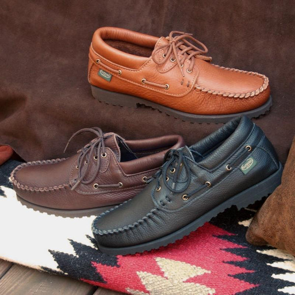 We offer this style in a choice of three leathers: tumbled full grain cowhide leather, deertan leather, or deerskin for extra softness.