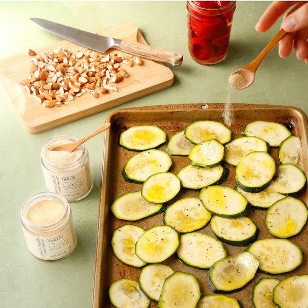 Plump and firm, our fresh California garlic is often recognized by its roots still intact. Picked at peak ripeness, it's gently dried to preserve flavor and freshness. Known for its distinctive aroma, garlic’s pungent, spicy flavor mellows and sweetens beautifully with cooking.