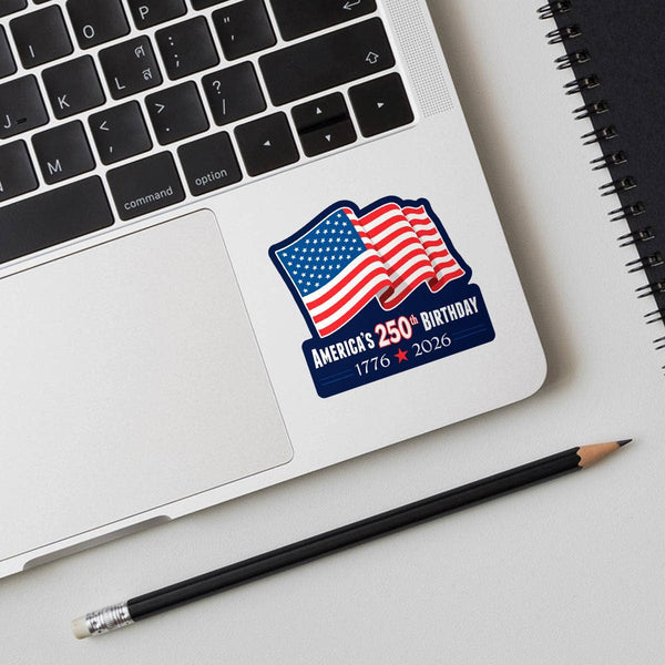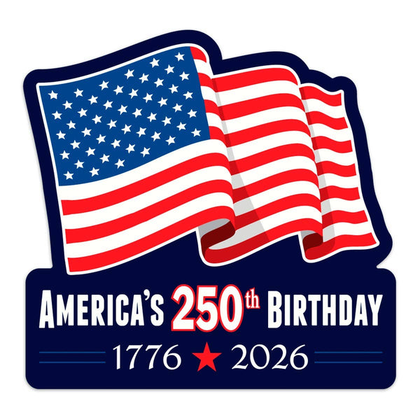 This design, "USA 1776 Flag 2026" Celebrates 250, is just one of the hundreds of die-cut, mini, and bumper stickers we offer. Our stickers are designed, printed, and shipped quickly from Nashua, NH. With excellent quality and a wide variety of designs, our sticker line. The perfect impulse buy with 3x markup potential! Hang your curated selection of mini stickers on our available display rack at checkout to make big profits in a small point of sale space. Each die cut decal features a patriotic design — quality you can see and feel in each crisp, eye-catching detail printed on durable premium vinyl. Your customers will love these tried-and-true basket builders for phones, laptops, water bottles, fridges, coolers, toolboxes, & more. Overall size with backing and built-in hang tag measures 2.5"W x 3.5"H. See below for sticker size: * Pack of 20 mini stickers * Scratch & weather-resistant * Sticker measures approx. 2.25"W x 2"H Ready-to-use UPC & barcode. America